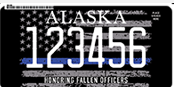 Honoring Fallen Police Officers designFor the complete list of Alaskan license plate designs, check the “License Plate” page on the Alaska DMV website.